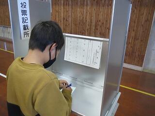 子どもたちは本当の選挙と同じ筆記所や投票箱等を準備していただき緊張感の漂う中投票していました。