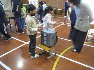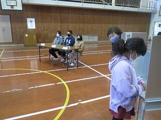 選挙の在り方について川南町選挙管理委員会の方にお越しいただき、多賀小内で選挙を行いました。