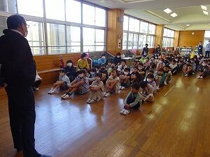 訓練後のお話しの中では、下校中や休みの日に不審者にであったとき、どういう行動をとればよいのか、分かりやすく教えていただきました。
