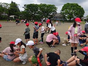 はじめに、6年生が企画したレクレーションを運動場で行いました。ドッチボールや陣取り、こおり鬼、しっぽとりなど、たて割班ごとに楽しく活動しました。6年生は、1年生から6年生みんなが楽しめるように、とルールを工夫したり、わかりやすく説明をしたりと、本当によく考えて行動していました。さすが多賀小の最上級生です。