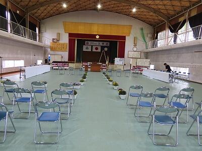 【1年生教室の飾りつけ。桜色に染まっていきます。体育館は・・】