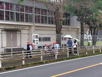 あいにくの小雨スタートですが、1年生も元気いっぱいのあいさつをして、登校できました。(えらい!)