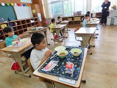 辛すぎず、甘めの汁で、1年生もおいしそうに食べていました。