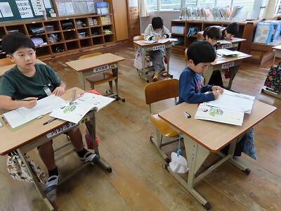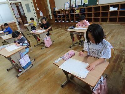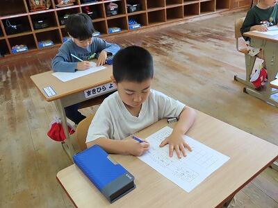 【この姿勢正しく勉強している子どもたちは、なんと1年生!眼鏡