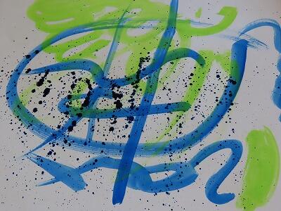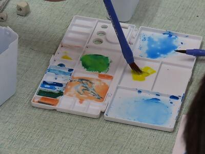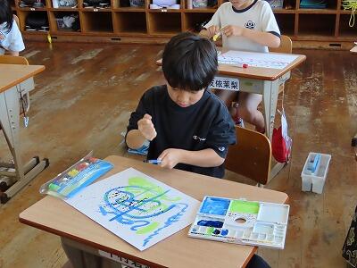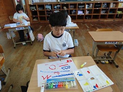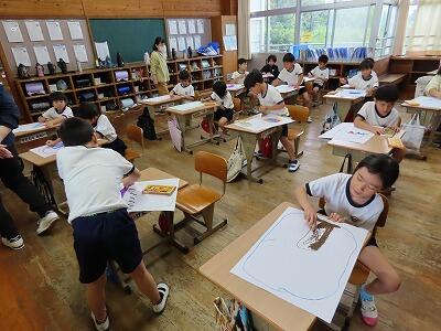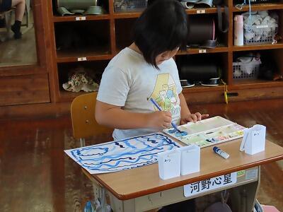 まずは、先生と筆の使い方、色の出し方等をしっかり学習。