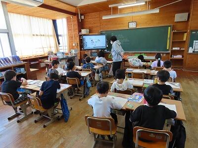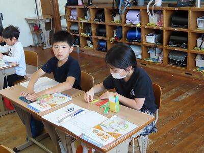 【先生がていねい教えてくれます。少人数学校の大きなメリットの一つです。】