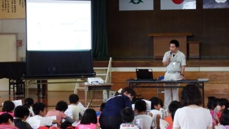 これまでの災害事例を資料やビデオ、模型で示し、災害の恐ろしさを児童に伝えられました。