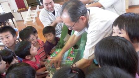 6月5日に本校の1、2年生と川南保育園の年長児が芋植えを行いました。