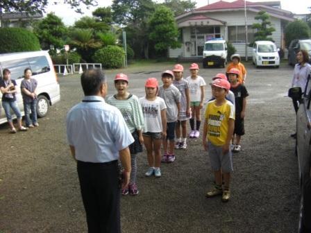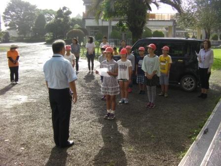 朝8時に出発式を行いました。5年生9名が体育館前に集合し、校長先生から激励の言葉をいただきました。