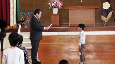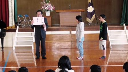 修了式の後、表彰が3件ありました。まずは、町NF「言葉の力アップコンテスト」の表彰でした。今回は、町内小中学校7校でなんと、本校5年1組が、「第1位」の快挙を成し遂げました。校長先生より、賞状と盾が代表者へ授与されました。おめでとうございます。次は、3学期の多読賞と年間到達目標達成者へ賞状が授与されました。受賞された皆さん、おめでとうございます。