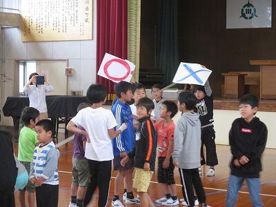 全校児童で「もうじゅう狩りゲーム」を楽しんだ後に