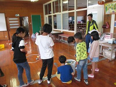 、1~6年生で構成された縦割り班で、6つのゲームを楽しみました。ゲームは、それぞれ、低学年から高学年までみんなが楽しめるよう工夫されていて、児童たちはとても楽しんでいました。
