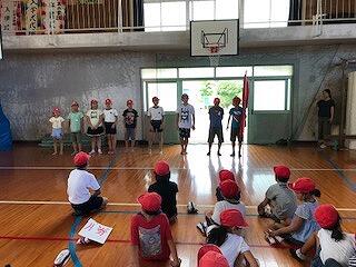J.FC MIYAZAKI(ジェーエフシーみやざき)からサッカー選手4名が訪問授業に来られ、4,5,6年生の児童と交流を行いました。