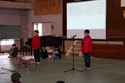 本校は、学力向上の取組として「表現力の育成」をひとつの柱にして、日々取り組んでいます。そういった意味では、自分の思いや考えを人前でも堂々と言える子供たちが徐々にではありますが、巣立ちつつあると実感できる発表会でした。沢山の方々に来ていただきありがとうございました。