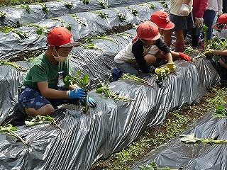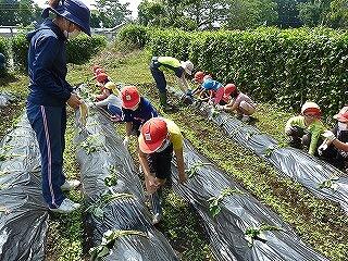 6月5日に本校の1、2年生と川南保育園の年長児が芋植えを行いました。
