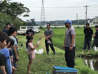 田植えが無事に終わり、最後に5年生の代表が協力してくださった方々にお礼の言葉を述べました。