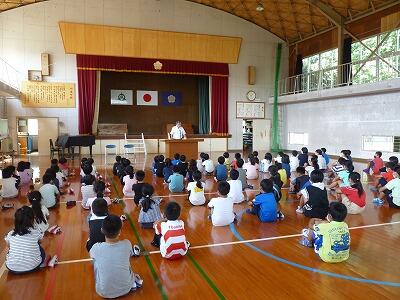 校長先生からは、1学期の児童の様子や夏休みの過ごし方についての話がありました。