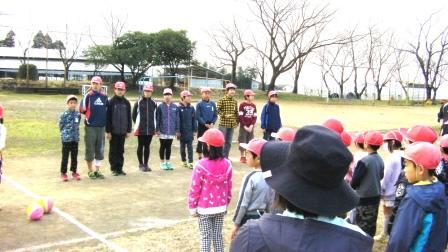 児童たちは、「おはしも」の約束を守り、口元をマスクやハンカチ等で覆いながら、運動場へ真剣に避難することができました。