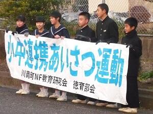また、「川南町内からいじめをなくす取組」について、意見交換がなされ、各学校の児童・生徒さんからたくさんの意見が出され、「あいさつ運動を全校で取り組むことや縦割り班や異学年の人と遊ぶ取組を行うこと」を確認し合いました。