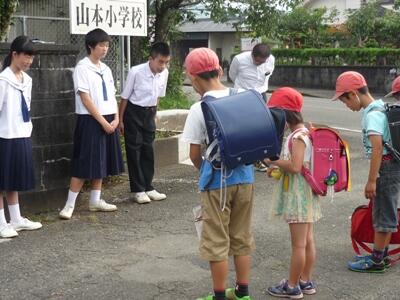 山本小学校は、プロジェクト委員会を中心に全校で取り組んでいる「あいさつプラス1」や「登校時のあいさつ運動」、「廊下で出会った時の立ち止り会釈」等について、動作を交えて、わかりやすく発表できました。