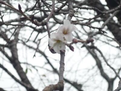 今週に入り、朝夕は、肌寒いくらいになりました。ふと、校庭の桜の木を見ると、葉の落ちた枝から、可憐な桜の花が咲いているのを見かけました。