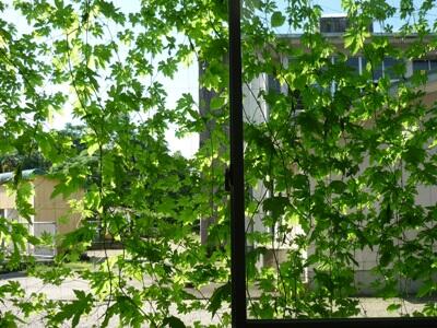 屋内から見たグリーンカーテンです。涼しいなあ!