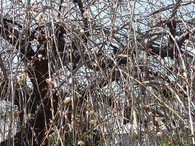 本日の朝の室外の気温-3℃、1月一番の冷え込みでした。西門横に梅の木がありますが2月には可憐な白花を付けて目を楽しませてくれます。