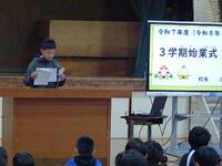 今日から、3学期がスタートします。始業式では、5年生の2人が今年の抱負を述べてくれました。