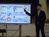 全校集会があり、保健体育部の先生から月目標について話がありました。「健康な体づくりをしよう」がめあてですが、そのためには何が必要かわかりやすく話をしてもらいました。そして、小学校2年生から取り組んでいた、バトミントンの技も披露してくれました。