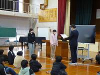 2年生児童2人が、2学期頑張ったことを作文発表してくれました。堂々とはきはきして、とても立派でした。