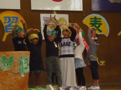 本日、日曜参観(学習発表会・PTAバザー・餅つき)を行いました。学習発表会では、各学年とも、今までの学習の中から、発表内容を工夫し、上手に発表することができました。