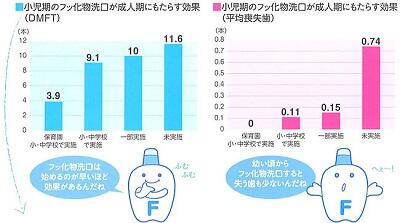 川南町では、永久歯やむし歯予防の手段として、フッ化物洗口を行っています。フッ化物洗口は一定濃度のフッ化ナトリウムを含む溶液を口に含み、1分間ぶくぶくうがいをする方法です。本校でも週1回実施しています。