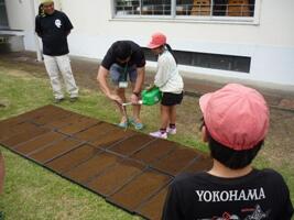 5年生は毎年、総合的な学習の時間に「米作り」に取り組んでいます。今年は、苗づくりからやろうということで、JA尾鈴青年部の方々に指導をしていていただて、苗床に籾まきをしました。6月13日に田植えができるように、しっかり世話をしてくれるといいな!