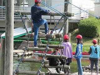 子どもたちは、利用方法の説明を受けた後、順番を守り、楽しく遊ぶことができました。