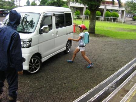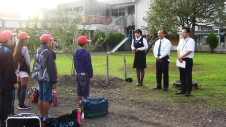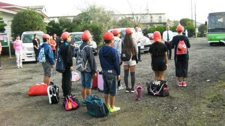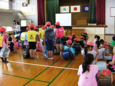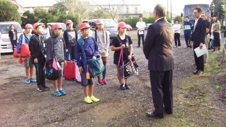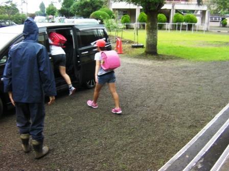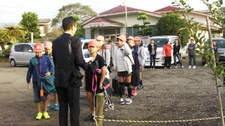まで町のマイクロバスで出発し、2~6年生は川南小学校まで徒歩で出発しました。