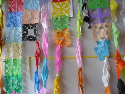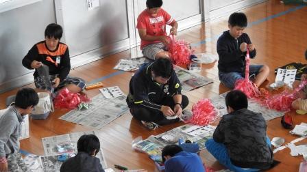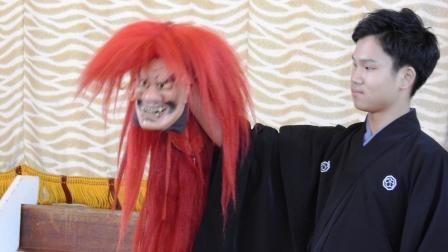 後半は、能面に着色したり面の髪を赤いビニールテープで作成したり、蜘蛛の糸を