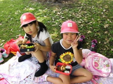 昼食はお弁当の日で、いろいろ工夫したお弁当を広げておいしくいただきました。