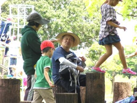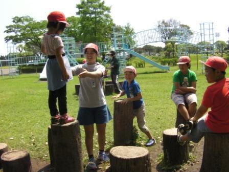 食後は、公園内の遊具で楽しく遊びました。縦割り班で遊び高学年の人が低学年の