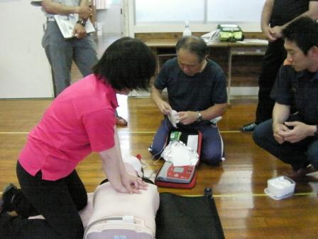 マッサージや人工呼吸法、AEDの取り扱い方について学びました。