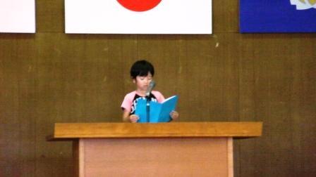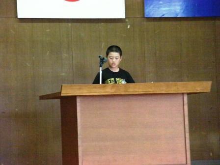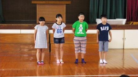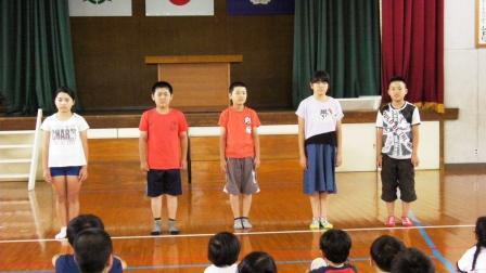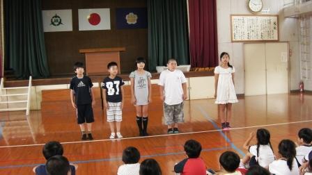 はじめに、旅行のお世話をいただきました運転手さん、ガイドさん、添乗員さんに、児童から感謝の言葉を伝えました。 次に、代表児童が、修学旅行の思い出と感謝の言葉を述べました。