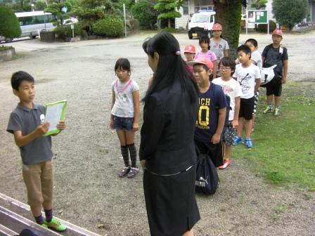 次に、6年生代表が出発のあいさつを先生方や保護者の方々にりっぱに行いました。