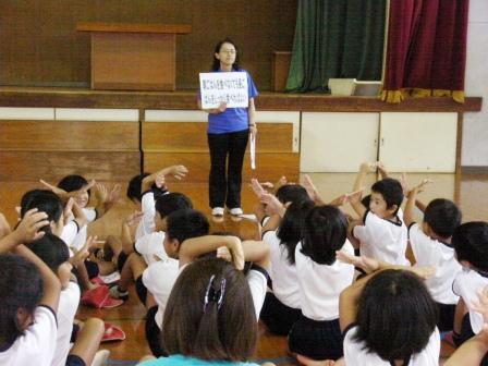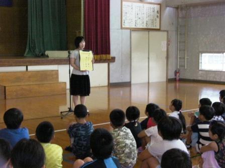 次に、健康つくり担当の先生から、6月の生活目標「歯を大切にしよう」について