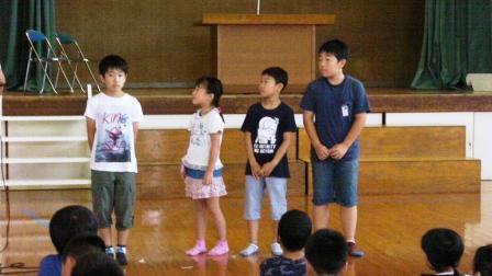 はじめに、山本小学校に関するクイズでした。山本小学校の児童と先生を合わせた数は、
