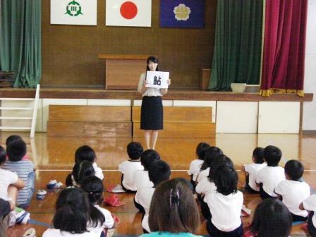 次に心の教育担当の先生より11月の生活目標「気持ちのよい言葉使いをしよう」についてお話いただきました。具体的に説明をしていただき、毎日実行することがよくわかりました。