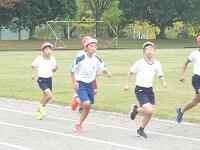 本日の午後、町内の小学校5校の6年生が、川南町運動公園陸上競技場に集まり、陸上記録会を行いました。競技は、100M、持久走、ソフトボール投げ、4×100Mリレーがありました。本校の9名の6年生も精一杯がんばりました。