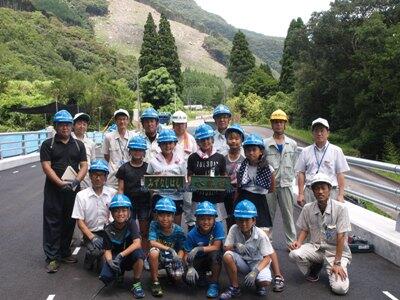 12日に、6年生は高鍋土木事務所が行っている橋梁工事の現場体験学習に行きました。事務所の方から、橋梁工事の説明や作業の説明などがありました。子ども達が書いた「みずなしはし」「水無橋」が実際に橋に取り付けられるそうです。なかなか体験できない事です。自分が書いた文字が橋の名として残るのです。いいですね・・・・・