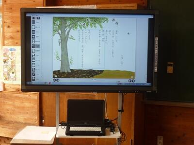 川南町では、効果的な学習指導の一つとして、ICTの活用を進めています。デジタル教科書や電子黒板、OHCなどが導入されています。本校でも、本年度、電子黒板を全学級に入れていただきました。デジタル教科書と教育機器等を活用して、効率的な指導と児童の興味や関心を高め、指導内容をより定着させていこうと、職員もICTの効果的な活用に取り組んでいます。