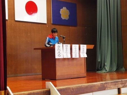 はじめに校長先生から、3月の大切な行事である「卒業式」と「修了式」までになすべき事柄について、卒業生と在校生に具体的にお話いただきました。「感動する卒業式・修了式に向かって、全員心を一つに毎日充実した生活を送りましょう。」とお話いただきました。