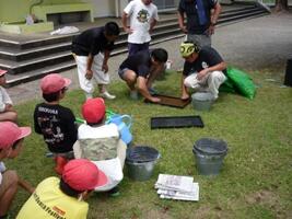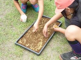 5年生は毎年、総合的な学習の時間に「米作り」に取り組んでいます。今年は、苗づくりからやろうということで、JA尾鈴青年部の方々に指導をしていていただて、苗床に籾まきをしました。6月13日に田植えができるように、しっかり世話をしてくれるといいな!