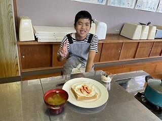 子どもたちは、朝食に合うスープや卵料理、野菜炒め、フルーツヨーグルトなどを作っていました。